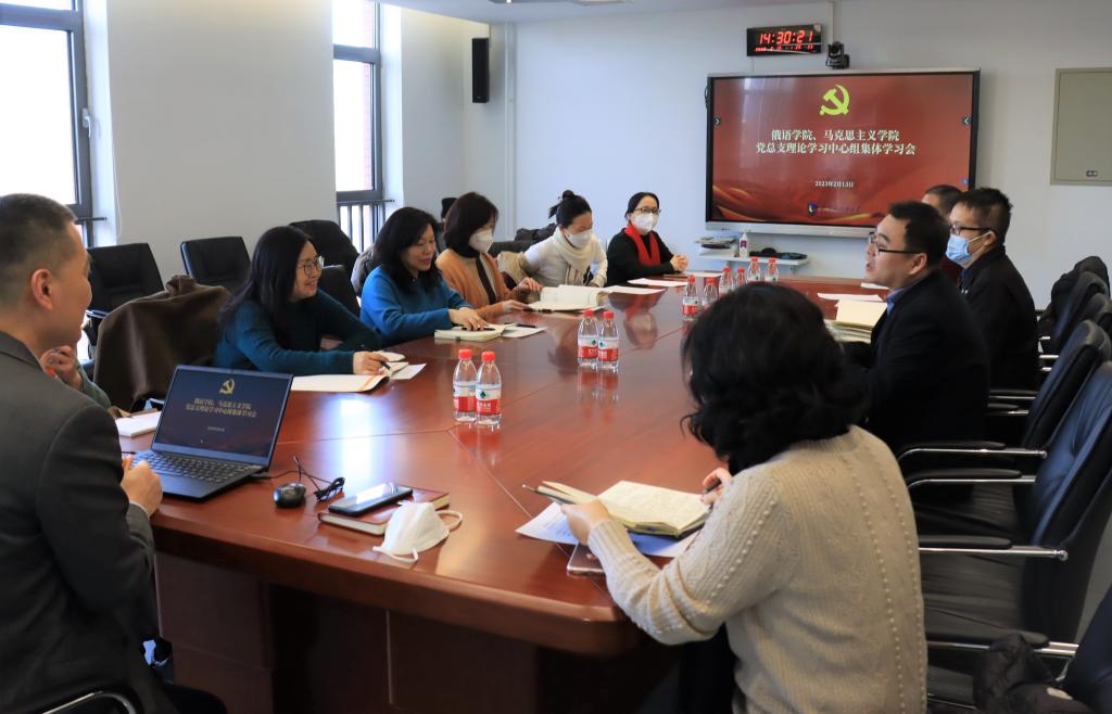 2月13日下午,为深入学习贯彻党的二十大精神,pg娱乐电子游戏官网入口、俄语学院党总支理论学习中心组联合进行理论学习。pg娱乐电子游戏官网入口院长韩强作题为“全面准确理解党的百年奋斗经验”报告。会议由pg娱乐电子游戏官网入口党总支书记祝和军主持。pg娱乐电子游戏官网入口、俄语学院党总支理论学习中心组全体成员参加联学。