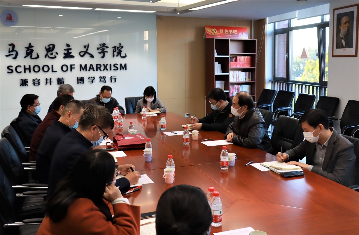 王定华书记和与会成员就具体问题进行交流,并对学院下一步工作提出了四点要求。一是更加关注师生身心健康。要引导师生积极参与体育活动,锻炼健康体魄。关心爱护学生,及时了解学生关切,回应合理诉求,排解成长烦恼;二是更加谋划重点马院建设。北京市重点建设马院是荣誉,也是任务和鞭策,要担负责任,通过办讲座、搞研讨、买图书、建课件、去参观、搞活动、出新书、办栏目等形式把学校加强马克思主义学科和学院建设的10项举措落实好,推动北京市重点马院建设产出更多标志性成果;三是更加做好北京市习近平新时代中国特色社会主义思想研究中心pg娱乐电子游戏官网入口研究基地的改革发展。要开展有组织的科研,积极组织校内力量进行科研联合攻关,产出更多高质量的成果;四是更加促进pg娱乐电子游戏官网入口建设行稳致远。要凝心聚力擘画马克思主义理论一级学科未来走向,对标学校“十四五”规划和“双一流”建设蓝图奋力前进。同时加强班子建设,进行年轻干部、后备人才和骨干教师的培养。