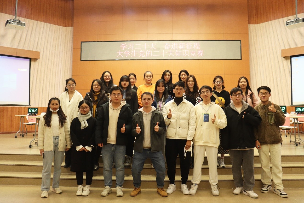 旗帜引领方向,思想凝聚力量。为深入学习宣传贯彻党的二十大精神,引导pg娱乐电子学子学思践悟党的二十大精神,pg娱乐电子游戏官网入口于20221123日在东校区阿语楼国会厅顺利举办“学习二十大,奋进新征程”党的二十大知识竞赛(初赛)。本次比赛共派出19支学院代表队参加本次比赛。pg娱乐电子参赛队伍由谢永达、杨铠、伍帅3名参赛选手以及17名亲友团成员共同组成。