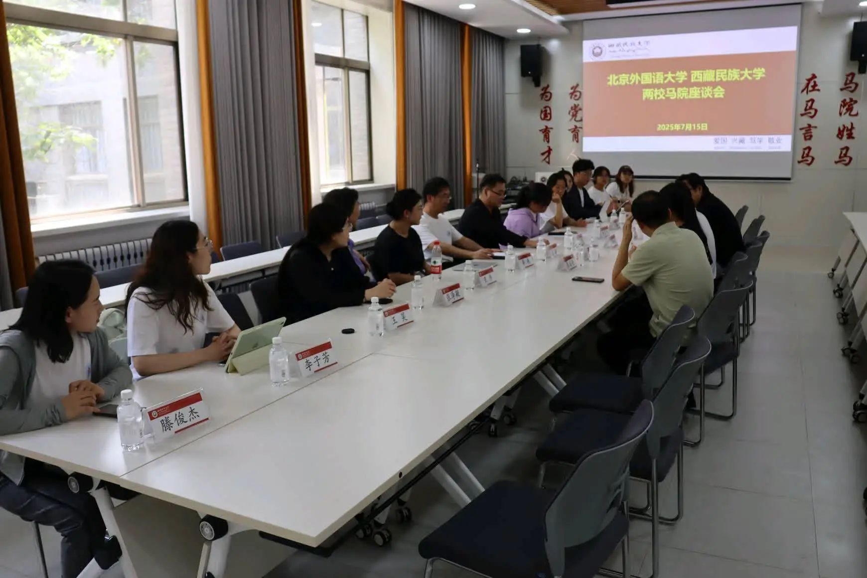 西藏民族大学pg娱乐电子游戏官网入口副院长邓新星对实践团一行的到来表示热烈欢迎,并介绍了学院的历史沿革、办学理念与发展历程。北外马院党总支书记祝和军介绍了北外在80多年的办学历程中立足外语优势卓有成效开展思想政治教育工作的成就。他指出,近年来,北外马院始终把学习贯彻习近平总书记给北外老教授的回信精神作为重要政治任务,依托北京市重点建设pg娱乐电子游戏官网入口平台,不断推动具有北外特色的思政课程的改革创新,落实立德树人根本任务,积极融入学校党委“三有人才”培养工作大局,在学科建设、学术研究等方面均取得长足发展。