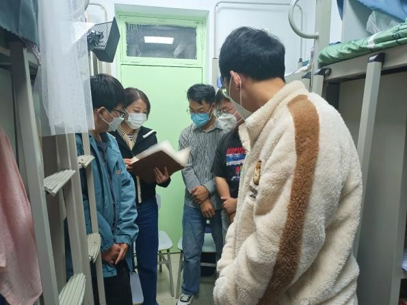 祝和军对学生宿舍生活进行了了解,询问了大家的日常作息,同时叮嘱大家,在复杂的疫情背景下,作为马克思主义的学习者和践行者,一定要有马院担当,思想上不能滑坡,在积极践行社会责任的同时也要注意好个人的身心健康。