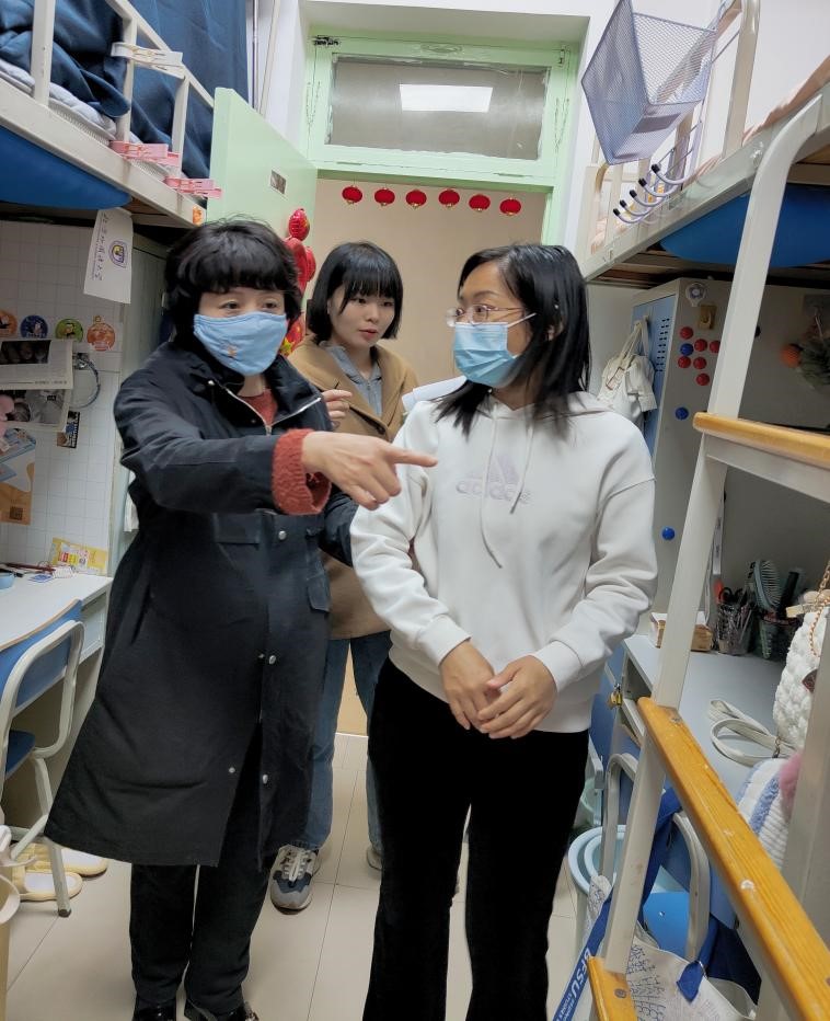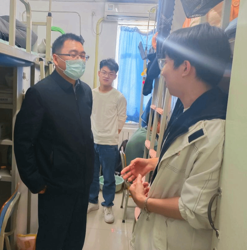 近日,为加强宿舍安全管理,排查宿舍安全隐患,营造良好的学习生活环境,pg娱乐电子游戏官网入口党总支书记祝和军老师、学生辅导员刘珊珊老师、办公室孟蔓老师带队深入学生宿舍走访慰问,了解学生宿舍基础设施、环境卫生、消防安全情况,并与同学们亲切交流。