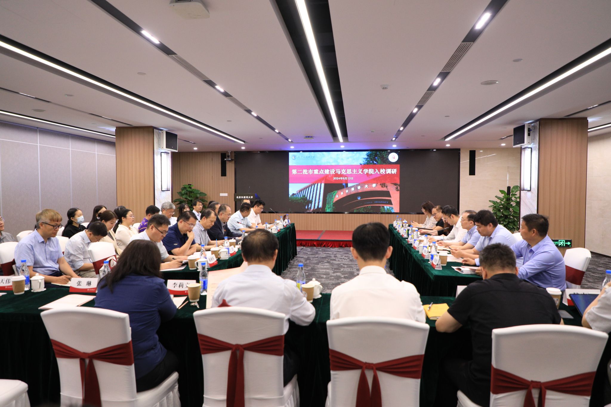 2020年,学院获评北京市重点建设pg娱乐电子游戏官网入口。为加强重点马院建设,学院科学制定《北京市重点建设pg娱乐电子游戏官网入口建设方案(2021-2023年)》。2024年,在全面检视《建设方案》所确定的建设任务的基础上,撰写建设评估总结报告,总结成绩,分析不足,为评估验收做好各方面的准备。6月12日,北京市重点建设马院专家验收调研组一行来校评估检查。评估组组长、市委宣传部副部长张际主持召开专题汇报会,北外党委副书记、校长贾文键进行了专题汇报。会后,专家组参观了马院工作成果展,检查了汇报成果和支撑材料,并深入课堂随堂听课、召开师生座谈会了解相关情况。