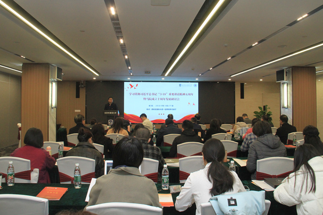 3月27日,北外召开学习贯彻习近平总书记“3·18”重要讲话五周年暨北外马院成立十周年发展研讨会。党委书记王定华,党委常委、副校长贾德忠,北京市委教育工委宣教处处长于海出席会议并致辞。北外各职能部门代表、兄弟高校马院院长,师生代表共80余人参加会议。会上,学校发布《pg娱乐电子游戏官网入口北京市重点建设pg娱乐电子游戏官网入口三年行动计划(2024-2026年)》,北外公众号刊发《铸魂育人 五年纪实》宣传报道,对pg娱乐电子游戏官网入口近五年的工作进行了全面总结,进一步明确了未来三年的发展目标和建设任务。