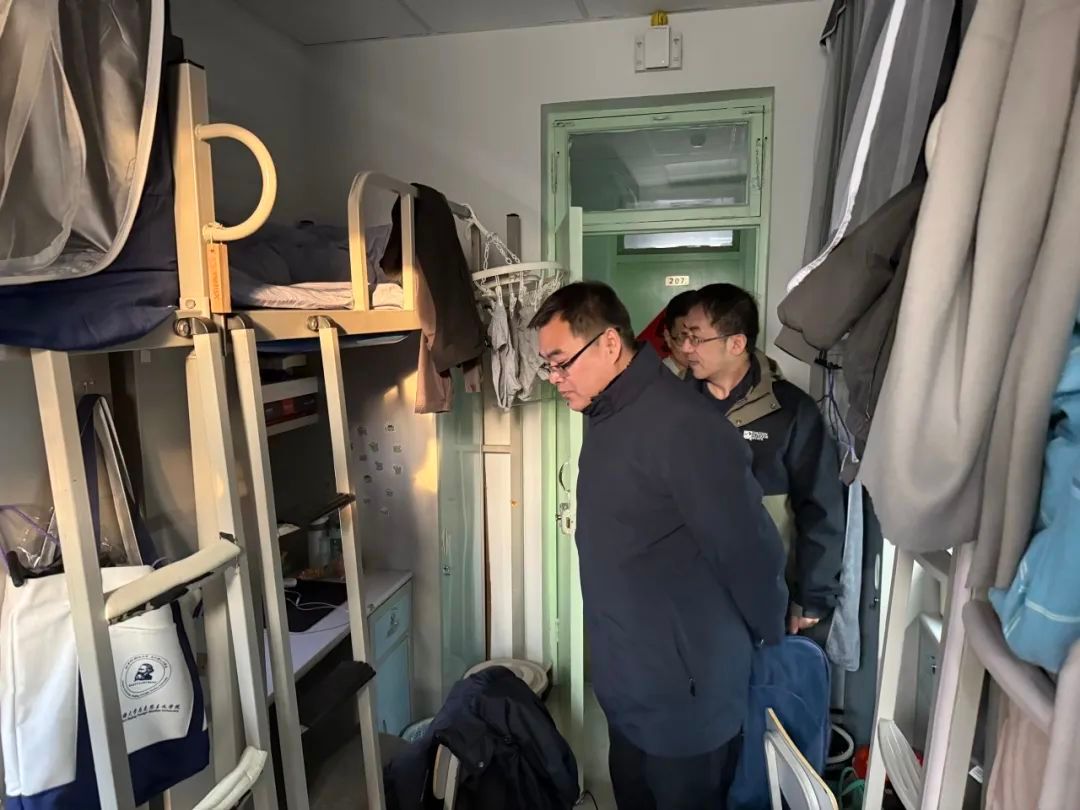 学院领导通过走访巡检以及与学生面对面的沟通交流,切实了解了学生宿舍的安全状况,进一步帮助和引导同学们增强消防安全意识。消防安全检查过程中,祝和军强调,第一,同学们务必养成人走断电的良好习惯,严禁使用违规电器,注意用电安全,防止因用电不当引发安全事故;第二,要保持宿舍卫生干净整洁,不要在宿舍内外堆积杂物,保持消防通道畅通。此外,老师们还了解了同学们的生活和学习状况,勉励大家认真学习,养成良好的生活习惯,共同营造良好的居住氛围。同学们纷纷表示会严格遵守学校的规章制度,牢记消防安全知识,共同维护好宿舍安全环境。