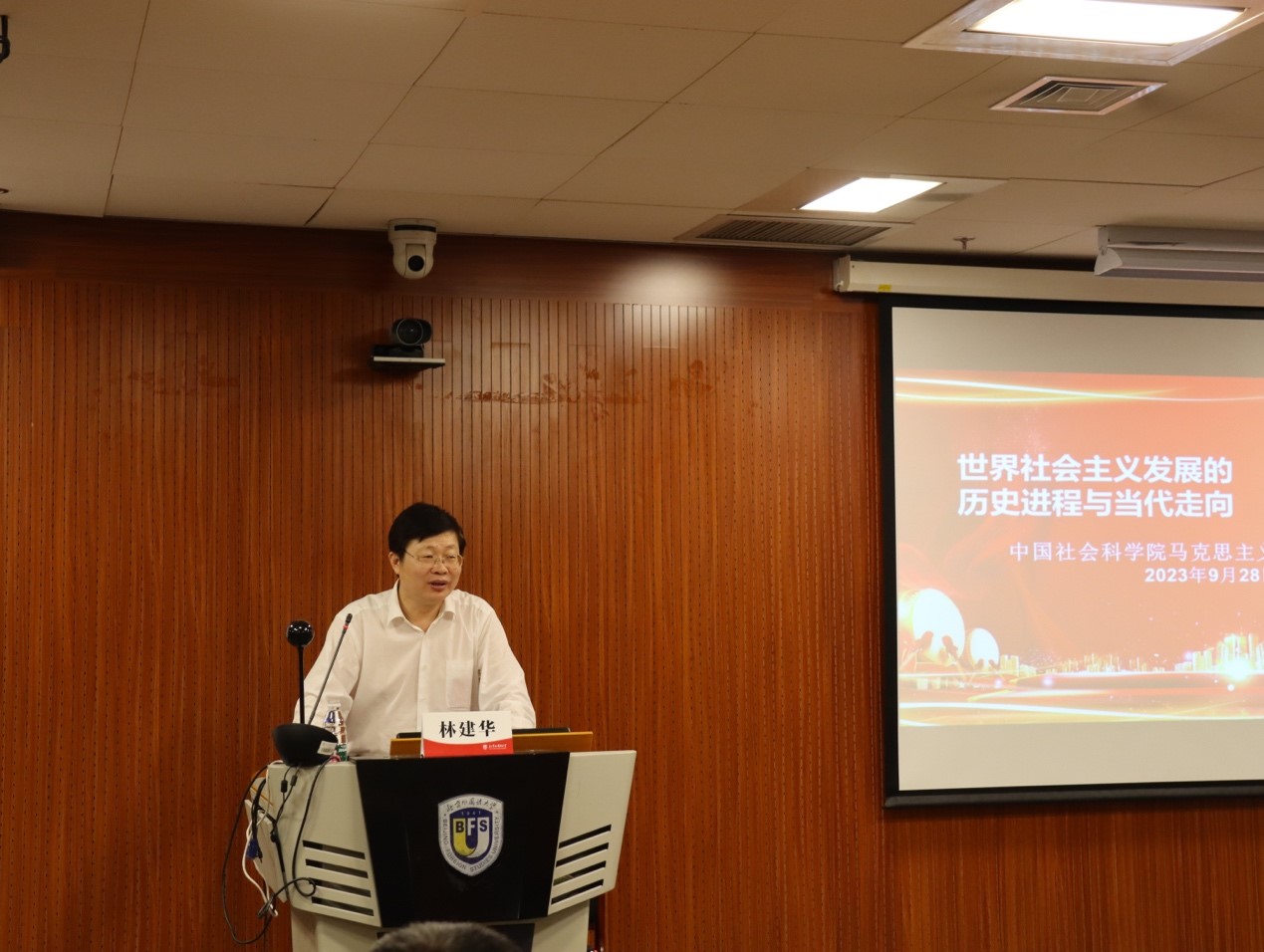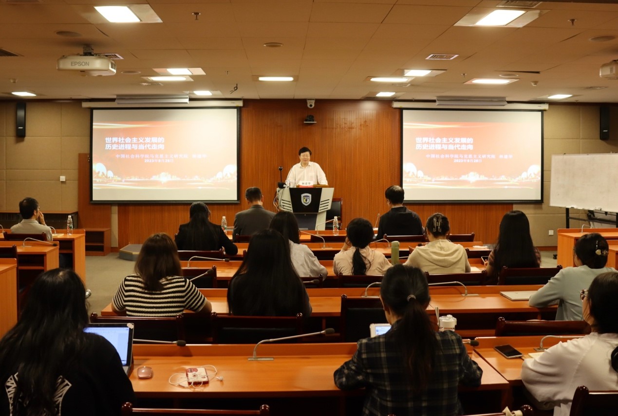 9月28日,北外马克思主义讲堂第十四期在国际大厦417教室成功举办。中国社会科学院马克思主义研究院副院长林建华教授应邀为pg娱乐电子师生作题为“世界社会主义发展的历史进程与当代走向”的专题讲座。讲座由pg娱乐电子游戏官网入口院长韩强教授主持。