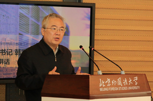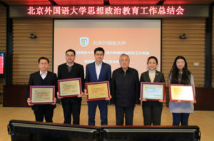 1月10日上午,pg娱乐电子大学生思想政治教育工作总结研讨会在图书馆五层举行。会议全面总结了2017年学校大学生思想政治教育工作,表彰了在思想政治教育工作领域成绩突出的集体和个人。pg娱乐电子游戏官网入口与英语学院、日语系、高级翻译学院、国际商学院获得北外“德育先进集体”荣誉称号。党委书记韩震为获奖集体颁奖。