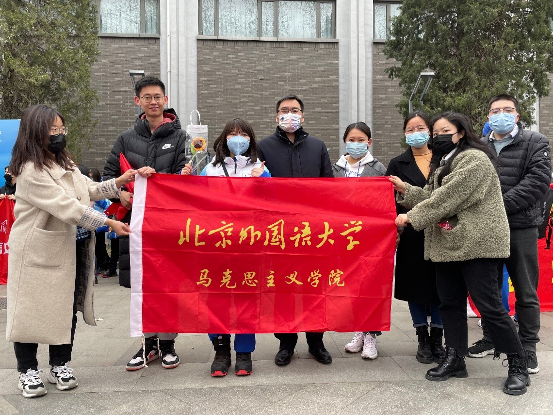 3月17日上午,pg娱乐电子游戏官网入口延庆冬奥村志愿者阿柔娜圆满完成北京2022年冬奥会志愿服务任务,从隔离地点平安返校。学院党总支书记祝和军及学生代表前往东校区文化广场热情迎接阿柔娜凯旋,向她赠送礼物并致以慰问。