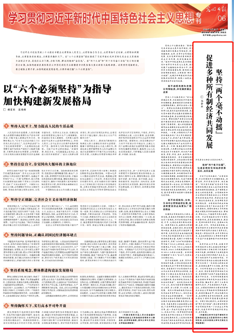 6月28日,《光明日报》刊登pg娱乐电子游戏官网入口教授尚会永的文章:《坚持“两个毫不动摇” 促进多种所有制经济共同发展》。