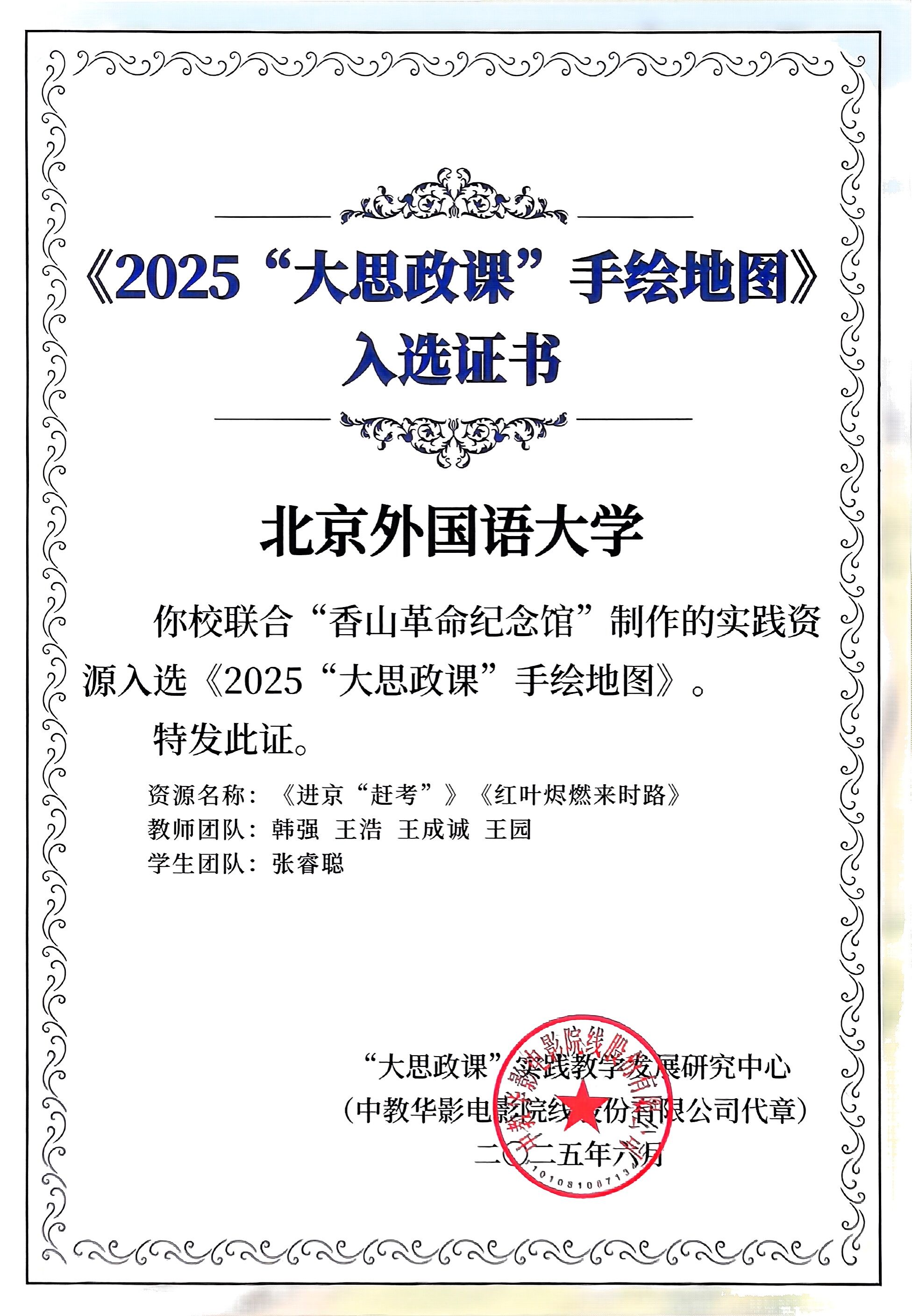 近日,“大思政课”实践教学发展研究中心向pg娱乐电子发来感谢信,对pg娱乐电子师生积极参与教育部委托建设“大思政课实践教学数字地图”项目表示感谢。pg娱乐电子马院教师团队带领来自不同学院的多名同学,通过点位采风,精心创作了7份手绘和视频作品。经专家评审,《香山纪念馆手绘元素》、视频《进京“赶考”》、《红叶烬燃来时路》,成功入选《2025“大思政课”手绘地图》。