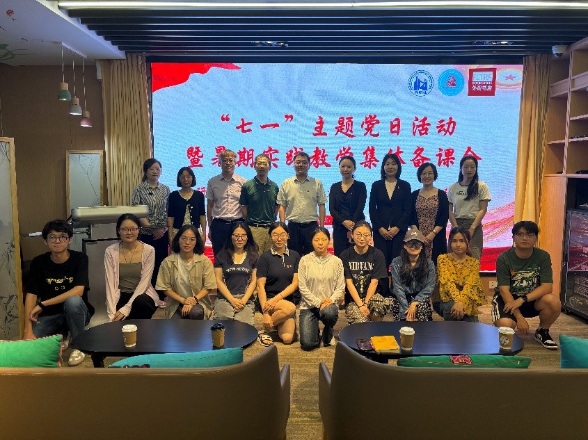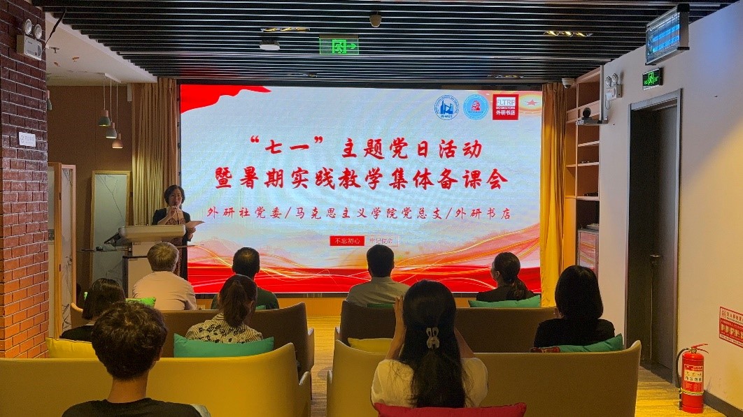 7月1日上午,为庆祝中国共产党成立103周年,深入贯彻落实习近平总书记对学校思政课建设的重要指示精神,外研社党委、pg娱乐电子游戏官网入口党总支、外研书店联合举办 “七一”主题党日活动暨暑期实践教学集体备课会。pg娱乐电子游戏官网入口党总支书记祝和军,外语教学与研究出版社中国语言文化出版分社社长鞠慧,pg娱乐电子游戏官网入口副院长孙磊、pg娱乐电子游戏官网入口党总支组织员王浩、pg娱乐电子游戏官网入口团总支书记辅导员刘珊珊出席会议,来自pg娱乐电子游戏官网入口的部分学生党员以及参加暑期实践教学活动的全体同学参加会议。活动由外研书店店长唐静文主持。